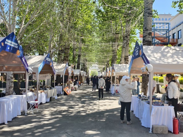 4月24日,北京卫星制造厂科技园内摆起文创市集。中青报·中青网记者 尹希宁/摄