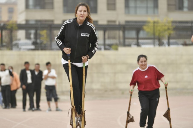 从上学时,柔鲜古丽就热衷于参与各项体育活动。无论是篮球、排球还是最擅长的高脚竞速,她总会挤出时间报名参赛。她说,体育就像一道光,多年来照亮了大漠边缘的生活。“它不仅可以锻炼身体,也能舒缓我在生活中遇到的压力。”