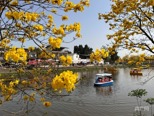 央广网简阳4月24日消息(记者 王颖 昌思荣)四月芳菲盛,踏青正当时。近日,四川省简阳市东麓花溪的千亩黄花风铃木迎来盛花期,金黄花海不仅吸引八方游客纷至沓来,更催生出多元消费新场景,让“鲜花经济”绽放出独特魅力。