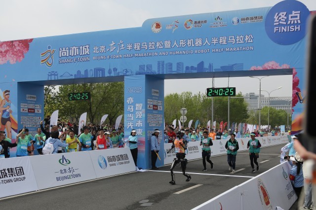 4月19日,身高一米八的人形机器人“天工Ultra”以2小时40分42秒的成绩冲线,拿下全球首个人形机器人半程马拉松赛冠军。