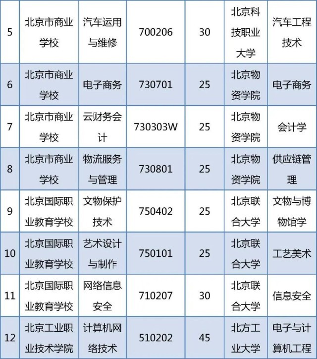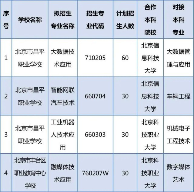 原则上由入选“北京市特色高水平职业院校”的中职学校与本科高校联合培养。