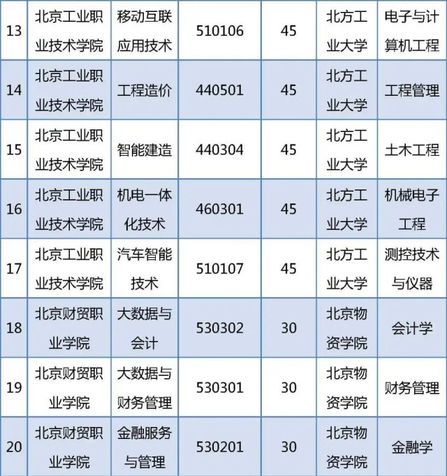 由入选“北京市特色高水平职业院校”的高职院校与本科高校联合培养。