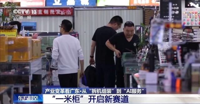 总台记者 王露莹:提起华强北,大家可能首先想到的是这里曾经能够迅速攒出一部手机。我刚才在电子市场逛了一圈后发现,这里尽管还是一个个一米柜台,但却几乎看不到组装手机、电脑这样的字眼了,取而代之的是组装无人机、AI玩具和提供各类数字解决方案的商家。