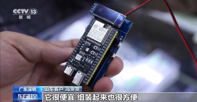 华强北商户 陈玉伟:主要订制消费类电子产品,还有一些工控类。这种就是大家玩的DIY的,AI语音模块。