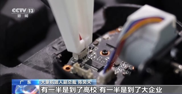 大象机器人副总裁 陈昊天:现在已经批量交付200台,有一半是到了高校,有一半是到了大企业,海外谷歌、微软购买硬件产品进行二次开发。