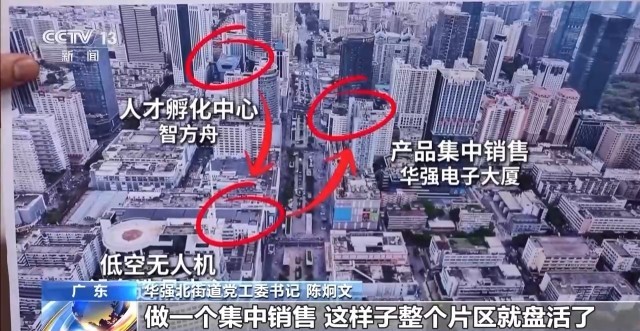 华强北街道党工委书记 陈炯文:这里有一个人才孵化中心,小样生产完以后会到这个选品中心,来做一个集成推广展示,最后的产品会在华强电子大厦做一个集中销售,这样子整个片区就盘活了