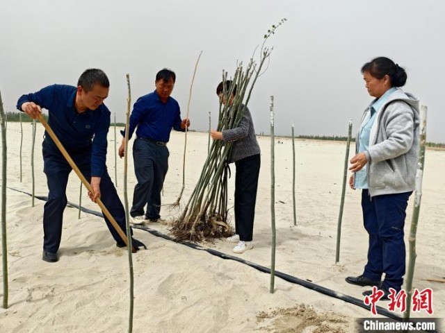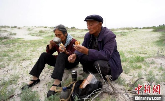 付志周依然带着妻子从捡树枝插栽开始,一步一俯身、一苗一瓢水,与风沙“死磕”。