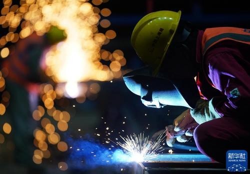 2023年6月30日,施工人员在中铁上海工程局蓝田制梁场加工箱梁模板。新华社记者 李一博 摄