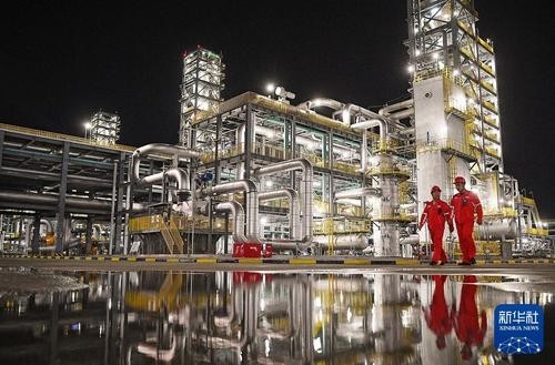 2023年7月27日,夜班工作人员在位于陕西榆林的中国石油长庆油田上古天然气处理总厂巡检。新华社记者 王鹏 摄