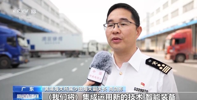 黄埔海关所属沙田海关物流监控科副科长 陈恩浩:货物现在从工厂离开,到清关、打板、安检、装船以及发运整个环节,最快可以在14个小时内完成。我们还在不断优化流程、提高效率,未来预计还可以节约2到3小时。