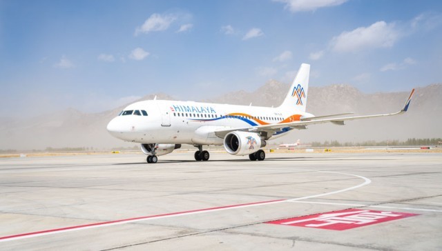 这是3月31日拍摄的执飞拉萨至博卡拉国际航线首飞任务的喜马拉雅航空H9731次航班。新华社记者丁增尼达 摄