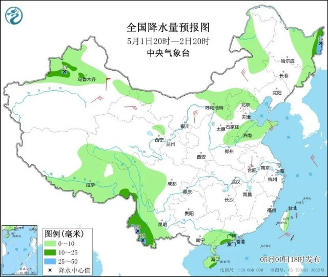 青藏高原中东部等地部分地区有小到中雪或雨夹雪;内蒙古中部和东北部、东北地区东部、新疆北部、华北北部、黄淮大部、四川盆地西部、云南中西部、华南南部和海南岛等地部分地区有小到中雨,其中,黑龙江东北部、新疆伊犁河谷、云南西南部等地部分地区有大雨。