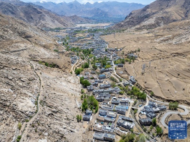 空中俯瞰维巴村(无人机照片,4月24日摄)。