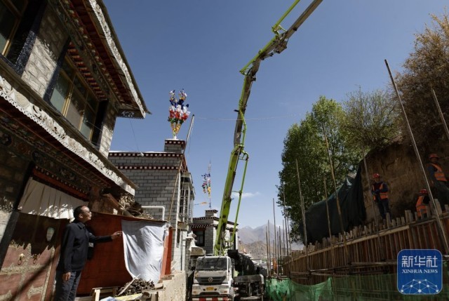 尼玛在村里的基础建设提升工程现场指挥工作(4月24日摄)。