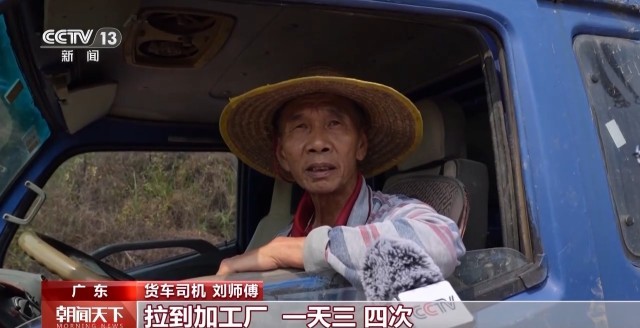 货车司机 刘师傅:拉到加工厂,一天拉三、四次,每次四、五吨左右。