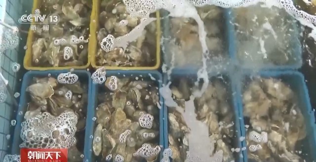 记者随后来到当地一家生蚝加工企业,看到工作人员将刚刚卸货的生蚝进行分拣、清洗、净化,去除体内泥沙和杂质,这些新鲜的生蚝第二天便可发往全国各地。