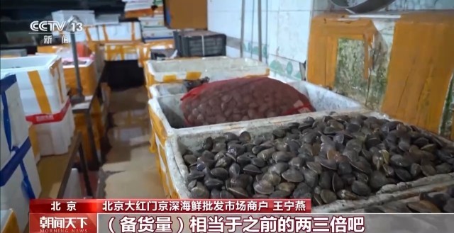 北京大红门京深海鲜批发市场商户 王宁燕:根据“五一”的情况,扇贝、生蚝这种适合聚餐的,我们会多备一点,备货量相当于之前的两三倍吧。