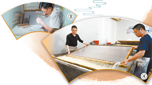 “捞纸动作看似简单,可每捞一张纸,纸槽中纸浆浓度都在降低。越往后捞,越要下水深、动作慢,才能保证每张宣纸的重量一致。其中的微妙变化,全凭感觉。”宣纸制作技艺省级代表性传承人周东红说。40年间,他亲手捞出1000余万张宣纸。