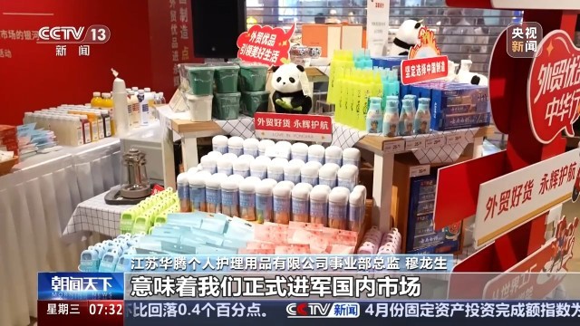江苏华腾个人护理用品有限公司事业部总监 穆龙生:第一轮我们先供货了差不多二十个门店的产品,每个门店数量不一样,后期我们还要考虑给他们长期做一些贴牌的服务。