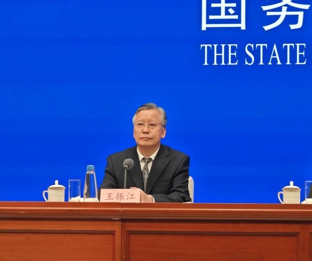司法部副部长王振江在发布会上 中青报·中青网记者 刘言/摄