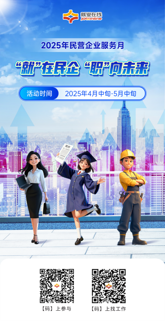 为支持民营经济发展,促进高质量充分就业,按照人力资源社会保障部等6部门关于开展2025年民营企业服务月活动安排,“就业在线”平台开展2025年民营企业服务月线上招聘求职服务活动,助力民营企业招聘用工和广大劳动者求职就业。
