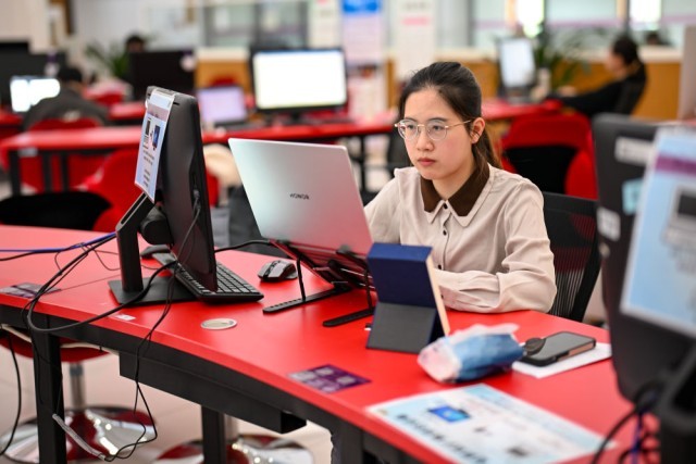 5月7日,在南开大学津南校区,杨雅丽在图书馆修改论文。