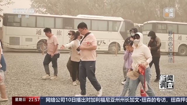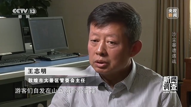 敦煌市常务副市长 付虎:这就风险就比较大了。一个我觉得就是作为外地游客,因为他对这种天气是很少有经历的,虽然当时我们这个沙尘暴前期这个情况出现以后,我们景区也第一时间,我们当时给游客提供免费的口罩、饮用水。但是如果说你说这么大量的游客,近万人的游客,如果在景区滞留下来,确实是一个非常大的风险和隐患,再加上这个月牙泉景区因为它的范围也比较大,地形也比较复杂,所以这里面就会有很多不可预判的风险存在,我们必须以最快的时间和沙尘暴赛跑。