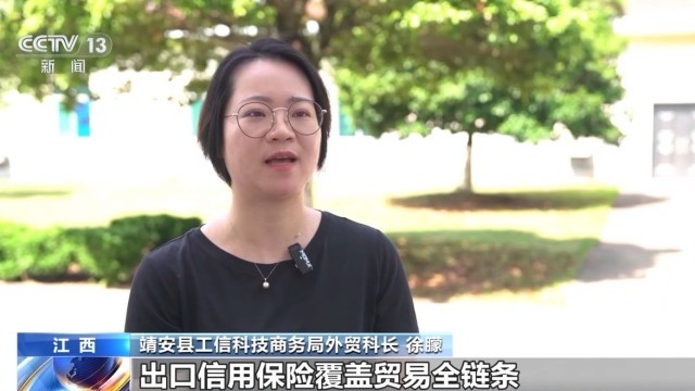 靖安县工信科技商务局外贸科长 徐朦:从订单签约到货款回笼,出口信用保险覆盖贸易全链条,企业不用再为“不可控风险”买单,自然能放开手脚开拓市场。