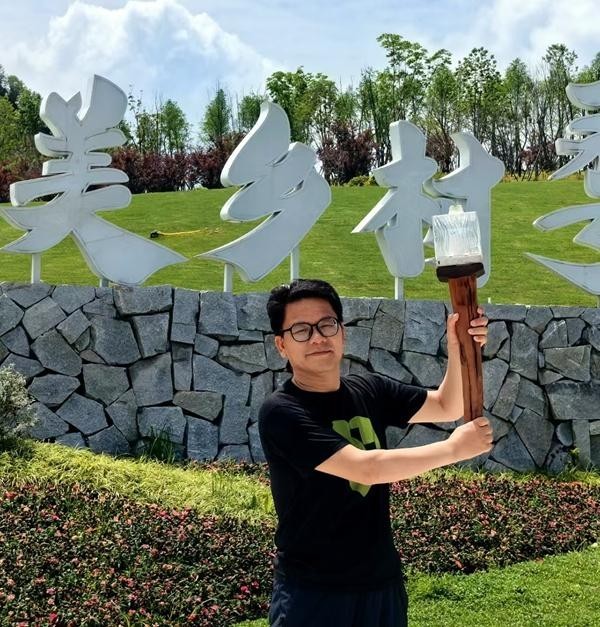 4月,叶榄在江西省婺源县传递“绿色出行·碳中和火炬”,倡导绿色旅游。