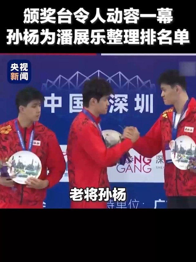 在颁奖仪式上还出现暖心一幕,老将孙杨为潘展乐整理排名单,帮他把排名“1”稳稳贴好。
