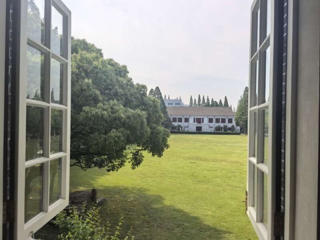 推开复旦校友馆窗户,正对着的就是相辉堂。中青报·中青网记者王烨捷/摄