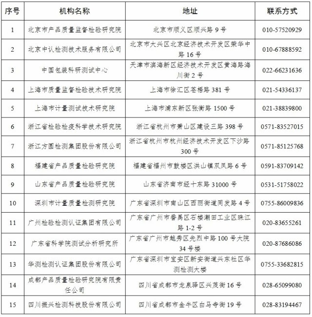 具有《限制商品过度包装要求 食品和化妆品》(GB 23350—2021)检测能力的检验检测机构名单