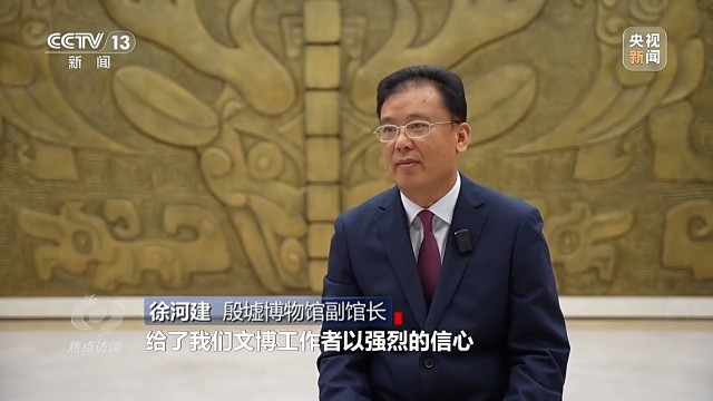 徐河建:总书记到殷墟考察给我们文博工作者强烈的信心,给我们指明了前进的方向、提供了根本遵循。那么,如何传承?我们综合运用科技赋能、人工智能、数字显能,让文物活起来。