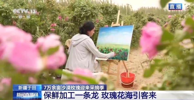 此外,于田县文旅部门还依托玫瑰花,推出了采摘体验、摄影绘画等文旅活动。一朵朵玫瑰花不仅开出了美丽,也成了造福当地百姓的大产业。