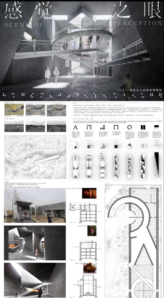 大三时,老师布置的一项课题是设计一座摄影博物馆。在去医院复查眼睛回校的路上,张诗艺决定:为视障群体设计一座博物馆。从视障群体在日常生活中的感知入手,让普通人也能体验、体会到视障群体对空间的感知及其内心感受的表达——在张诗艺看来,这是一种“更内化的共情”。