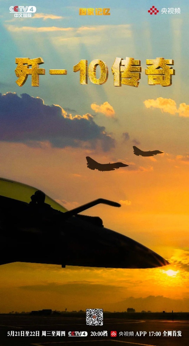 由中央广播电视总台华语环球节目中心策划推出的纪录片《歼-10传奇》将于5月21日至22日晚八点在CCTV-4《国家记忆》栏目播出。本片以歼-10飞机的研制历程为主线,通过大量珍贵历史影像、亲历者口述和专家访谈,全方位、多角度回顾这款中国自主研发的“争气机”诞生背后的故事,深入展现宋文骢等老一辈航空人的报国情怀与科学精神。