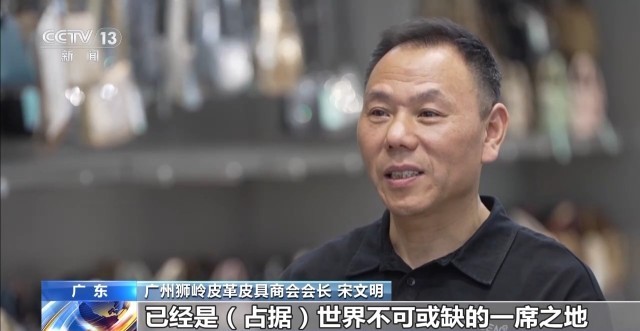 广州狮岭皮革皮具商会会长 宋文明:事实上,现在中国的皮具已经占据世界不可或缺的一席之地,现在全球的供应链体系没有一个区域,像我们这么深的、这么全的。从战略上来讲,我认为不用担心。很多企业家都已经意识到这一点,实际上现在我们都在思考品牌的问题。