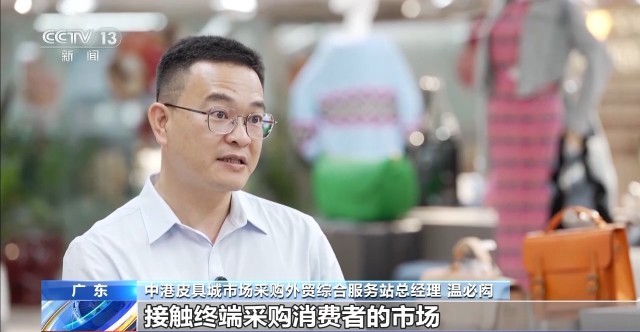 中港皮具城市场采购外贸综合服务站总经理 温必闳:因为我们是第一手接触终端采购消费者的市场,比如说我卖某个包包,这种包包的颜色、大小、款式、价格,它的销量如何,直接反馈到这个产品在当地的一种需求量,客户需求最终转化到这里,给到企业就是销量跟产量。