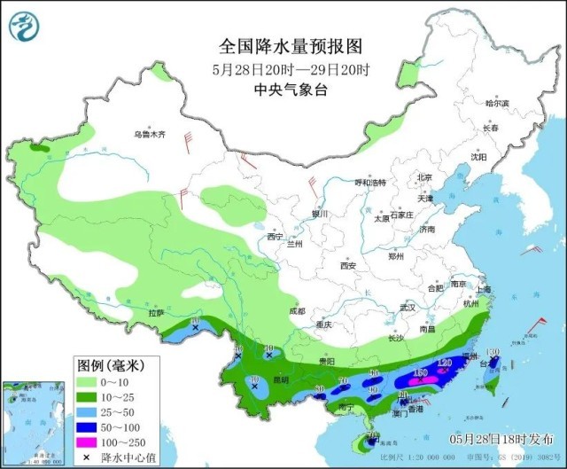江南东部和南部、华南大部、西南地区南部、台湾岛等地部分地区有中到大雨,其中,福建南部、江西东南部、广东北部和南部沿海、广西中部和东部、海南岛东部、台湾岛北部等地部分地区有暴雨或大暴雨。
