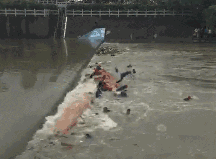 据悉,演练前一天,桂林刚下过大暴雨,多位村民介绍说,当时江面比“滚水坝”高出几十厘米,人被卷入很难逃生。