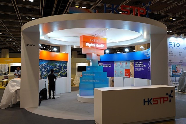 这是第16届香港国际医疗及保健展上的香港科技园展区(5月26日摄)。新华社发(郭辛摄)