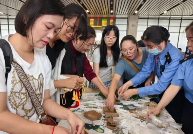 深圳站管内各站策划开展了别开生面的文化主题活动,在候车室与旅客互动有奖问答、猜灯谜,宣传中华传统文化。工作人员还为旅客准备了手工制作端午节特色挂件、五彩手绳,让旅客在候车时也能感受到传统文化的魅力。