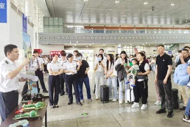 本次活动在车站和列车上设置龙舟打卡点,通过文明出行宣传折页讲解、趣味互动答题、传统文化图书展、制作艾草香包、文艺表演等形式,让旅客沉浸式感受传统非遗文化与铁路优质服务相结合的独特魅力,打造“文化+出行”的节日盛宴。