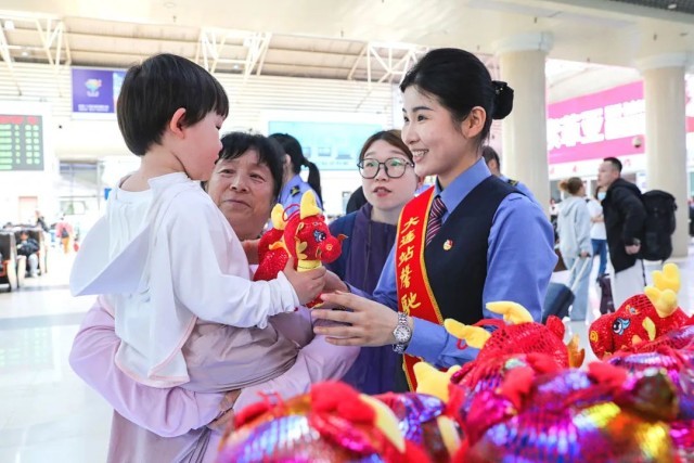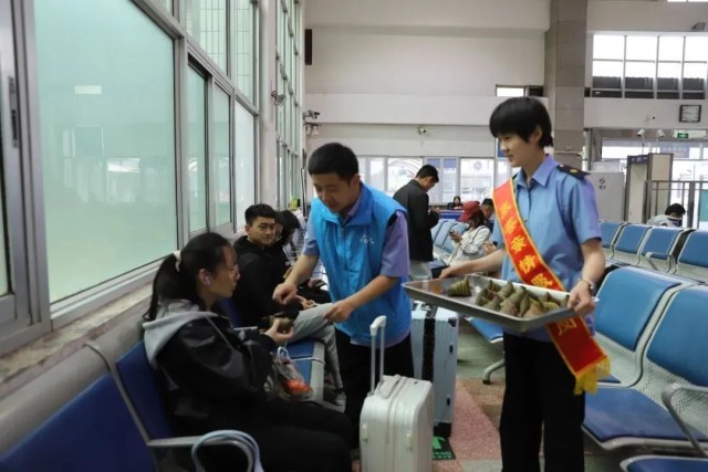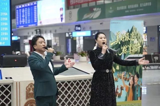 长春站组织文艺骨干、青年团员在候车室现场表演群舞、女生独唱等文艺节目,通过趣味知识问答、发放节日小礼品等形式与旅客开展互动,共同分享端午习俗,感受传统文化的魅力。