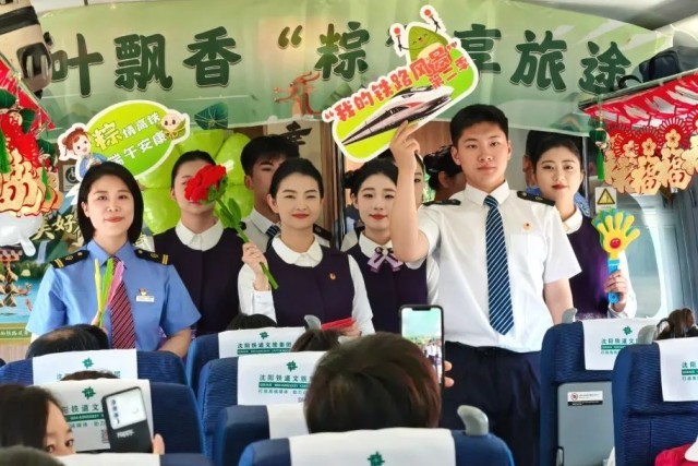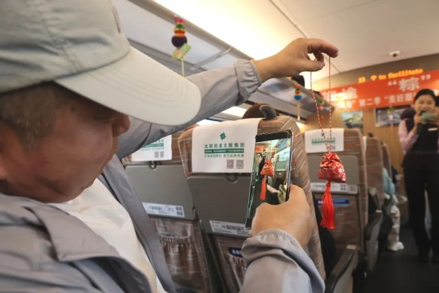 大连客运段、沈阳客运段、长春客运段将列车车厢打造成流动的文化展厅。在多趟列车上,列车工作人员身着汉服,为旅客讲解端午习俗典故,带领旅客制作龙舟挂饰,并为旅客们送上歌曲舞蹈等文艺节目。