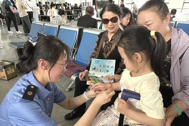 丹东站在杜鹃花服务台、儿童娱乐区等多处所精心打造“儿童乐园”,与儿童旅客互动,向小朋友们赠送小粽子福包、折叠扇等小礼品,营造浓浓节日氛围。同时,车站做好儿童旅客出行安全提示提醒,把住进站候车、通道走行、站台乘降关口,确保儿童平安、快乐出行。