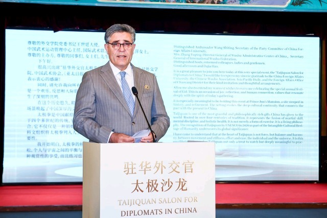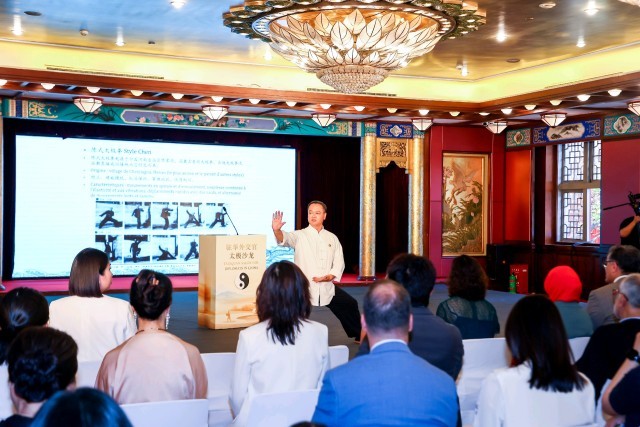 巴基斯坦驻华大使卡里尔·哈什米分享了自身经验,称太极拳看似简单,实则非常具有挑战性,需要深刻的内在专注、自律和沉着。他表示,巴基斯坦和中国的关系在政治、经济、战略和文化等各个方面都在不断加深,本次沙龙活动对这种关系至关重要,“它不仅能让我们见证和欣赏中国的人类非物质文化遗产,还能让我们与之直接接触,并从中学习、反思和成长”。