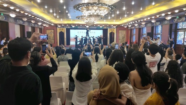 6月6日,北京,“驻华外交官太极沙龙”活动上,首都体育学院的表演者们带来精彩演出,中外嘉宾纷纷起立观看、拍摄。贾子凡/摄