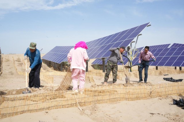 据介绍,该项目预计于6月底具备并网发电条件,投产运行后年发电量达3.6亿千瓦时,配套治理沙地2.4万亩。新华林场场长贺鑫说:“在开展‘三北’工程攻坚战以来,我们采取‘以工代赈’形式,组织周边村民参与光伏项目建设、林草种植等全流程作业,参与农民的人数超过2000人。”