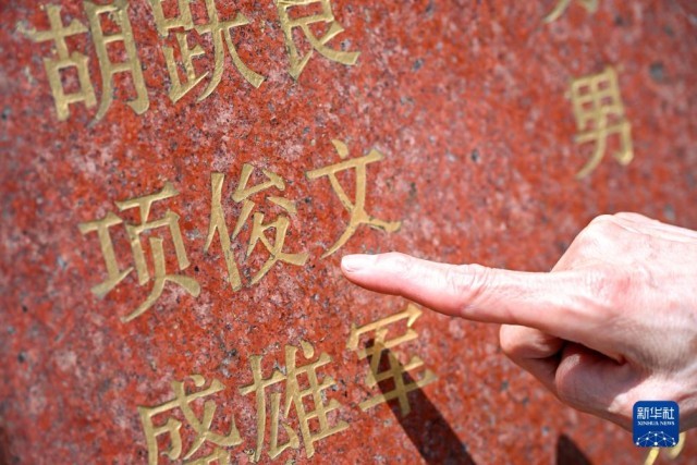 这是2025年4月2日拍摄的浙江省金华市孝顺革命烈士陵园“孝顺镇革命烈士英名录”局部。在孝顺革命烈士陵园,当地政府用雷烨的原名项俊文竖立墓碑。“项俊文”这三个字,永远镌刻在了“孝顺镇革命烈士英名录”的石碑之上。新华社记者 刘金海 摄